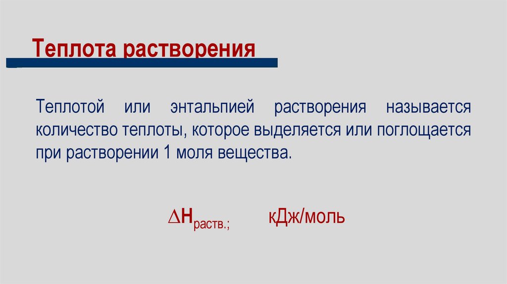 Теплота растворенияТеплотой или энтальпией растворения называется