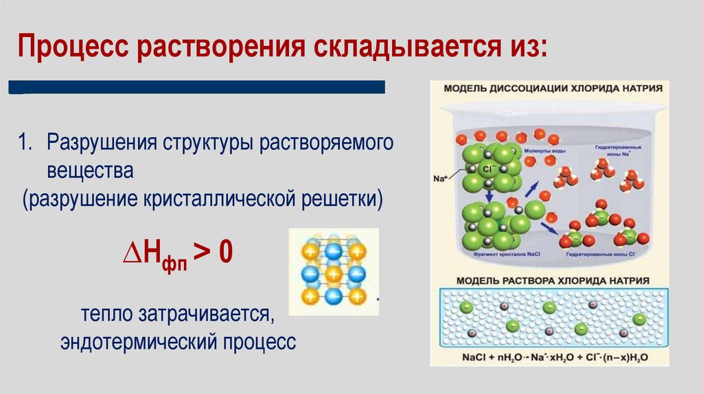Процесс растворения складывается из:1. Разрушения структуры растворяемого
