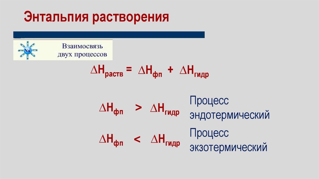 Энтальпия растворения∆Нраств = ∆Нфп + ∆Нгидр