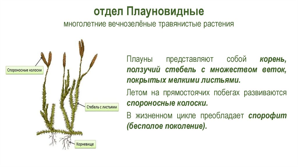 отдел Плауновидныемноголетние вечнозелёные травянистые растения