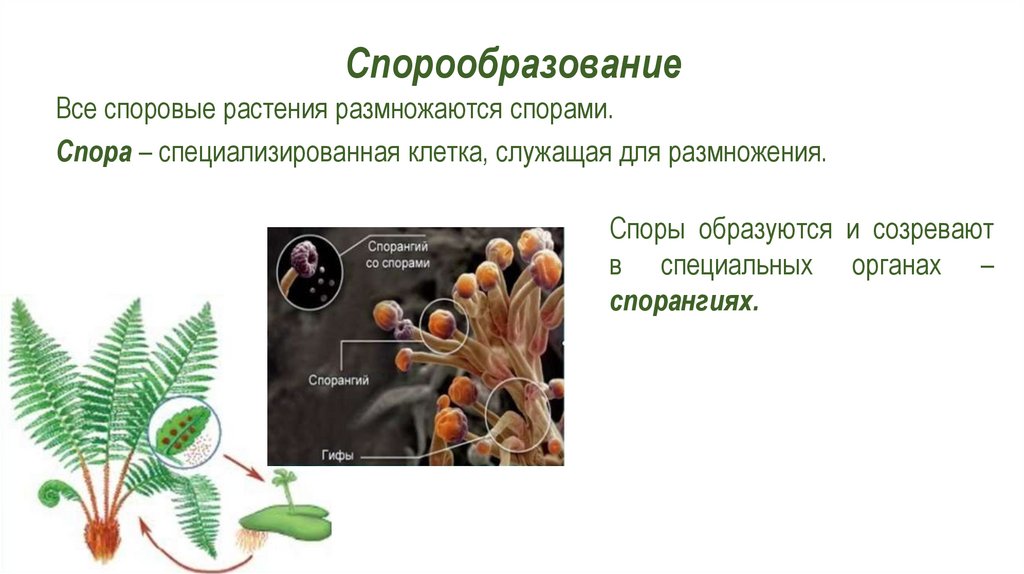СпорообразованиеВсе споровые растения размножаются спорами.