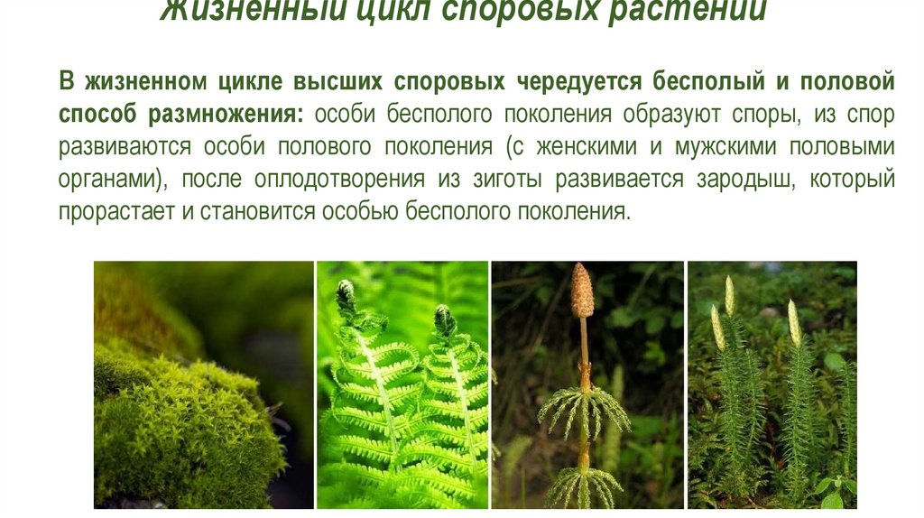 Жизненный цикл споровых растенийВ жизненном цикле высших споровых чередуется бесполый и половой