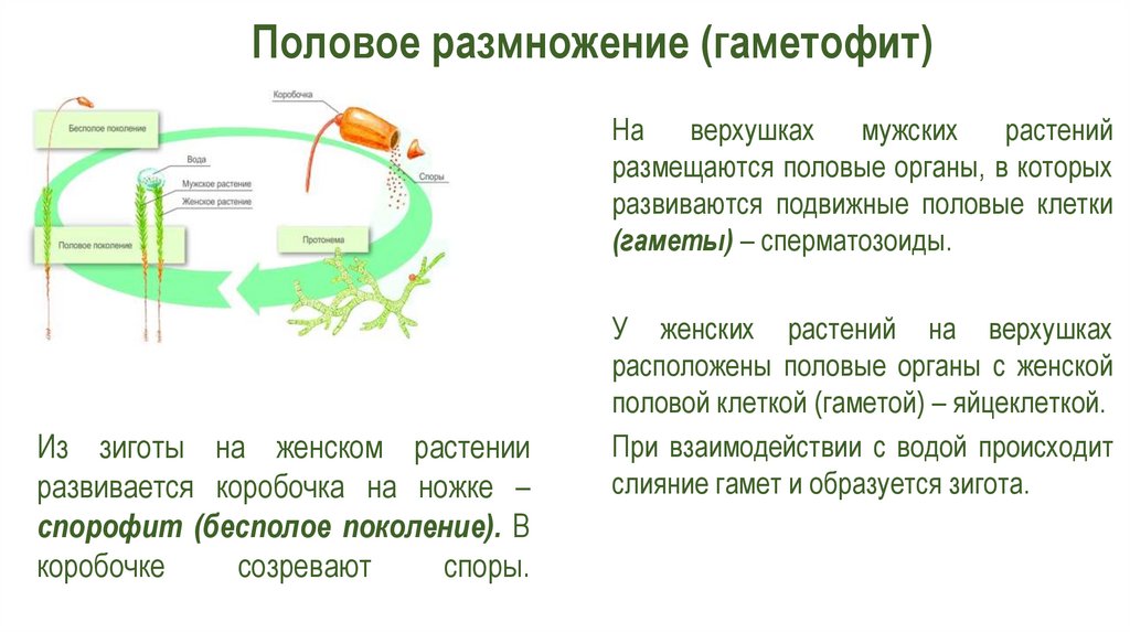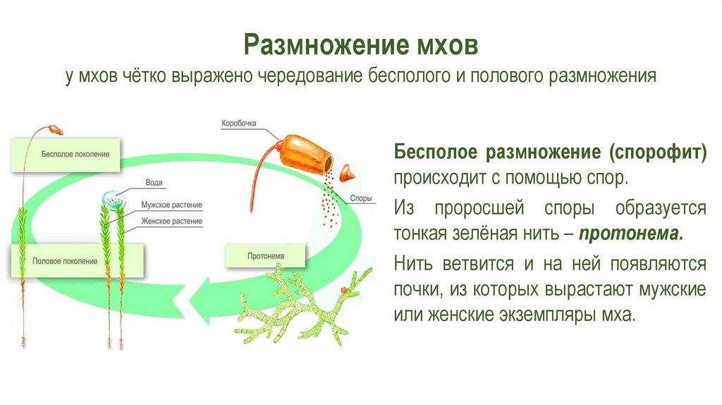 Размножение мхову мхов чётко выражено чередование бесполого и полового размножения