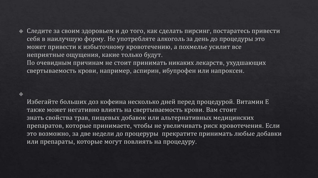 Кровотечение - алкоголь, кофе, повышенное давление, прием кроворазжижающих препаратов(аспирин), пмс, полнолуние
