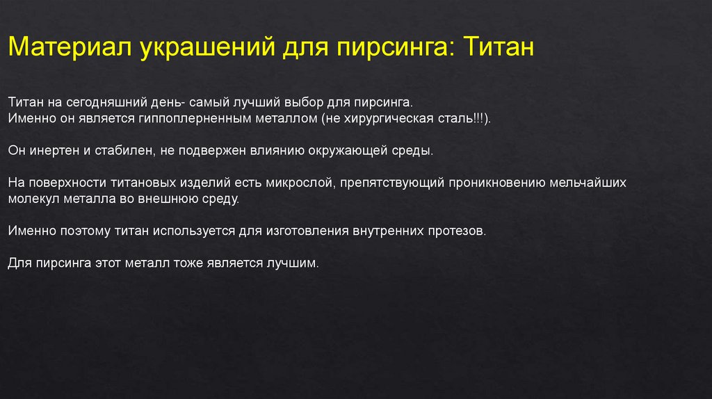 Для пирсинга этот металл тоже является лучшим.