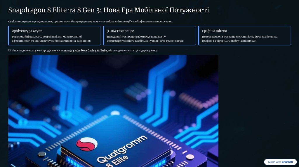 Ці чіпсети демонструють продуктивність понад 3 мільйони балів у AnTuTu, підтверджуючи статус лідерів ринку.