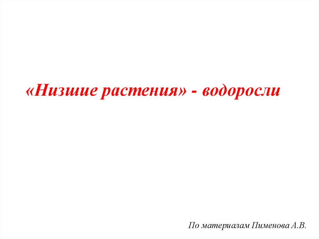 «Низшие растения» - водорослиПо материалам Пименова А.В.