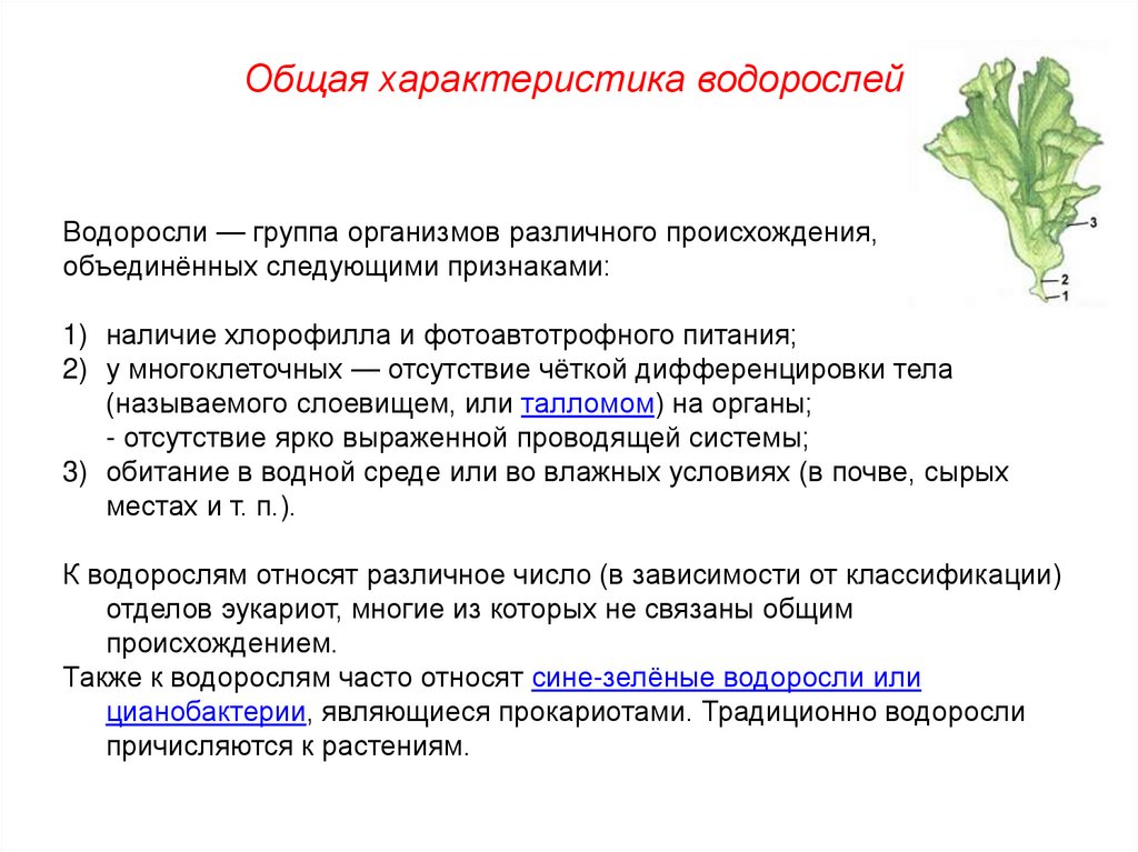 Общая характеристика водорослейВодоросли — группа организмов различного происхождения,