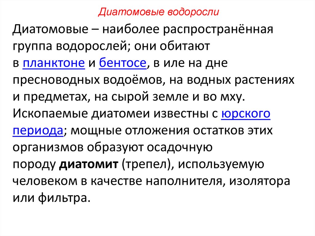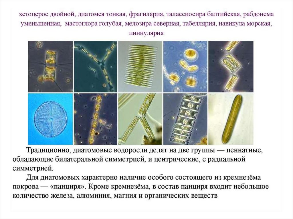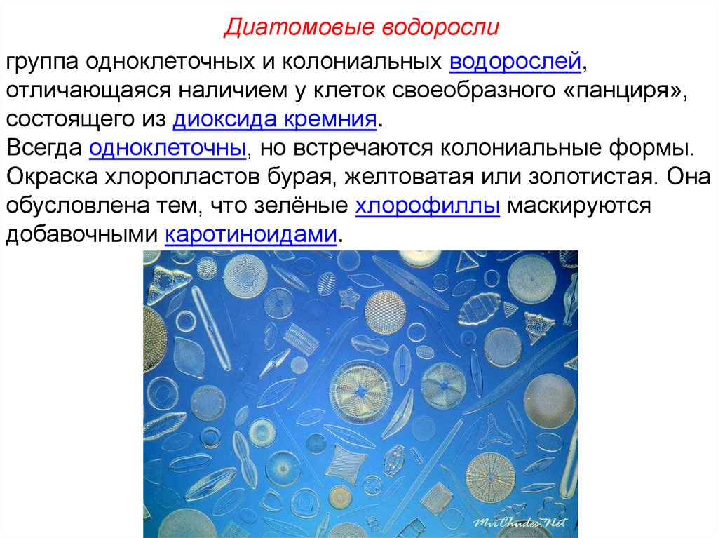 Диатомовые водорослигруппа одноклеточных и колониальных водорослей,