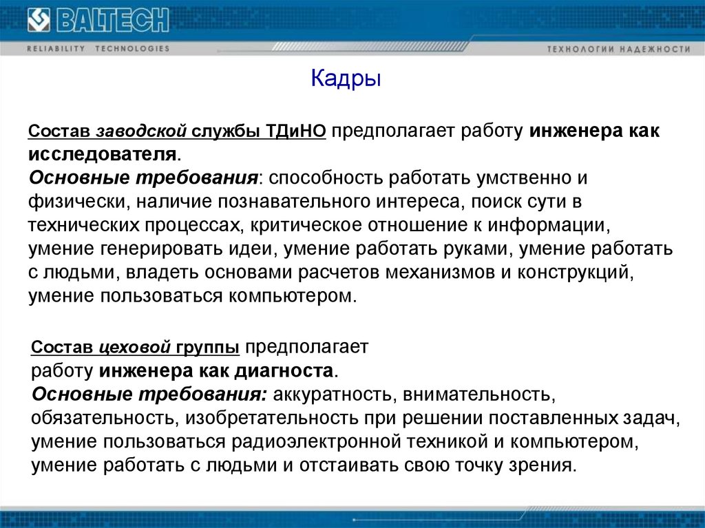 Первоначальная задача заводской службы ТДиНО - внедрение системы