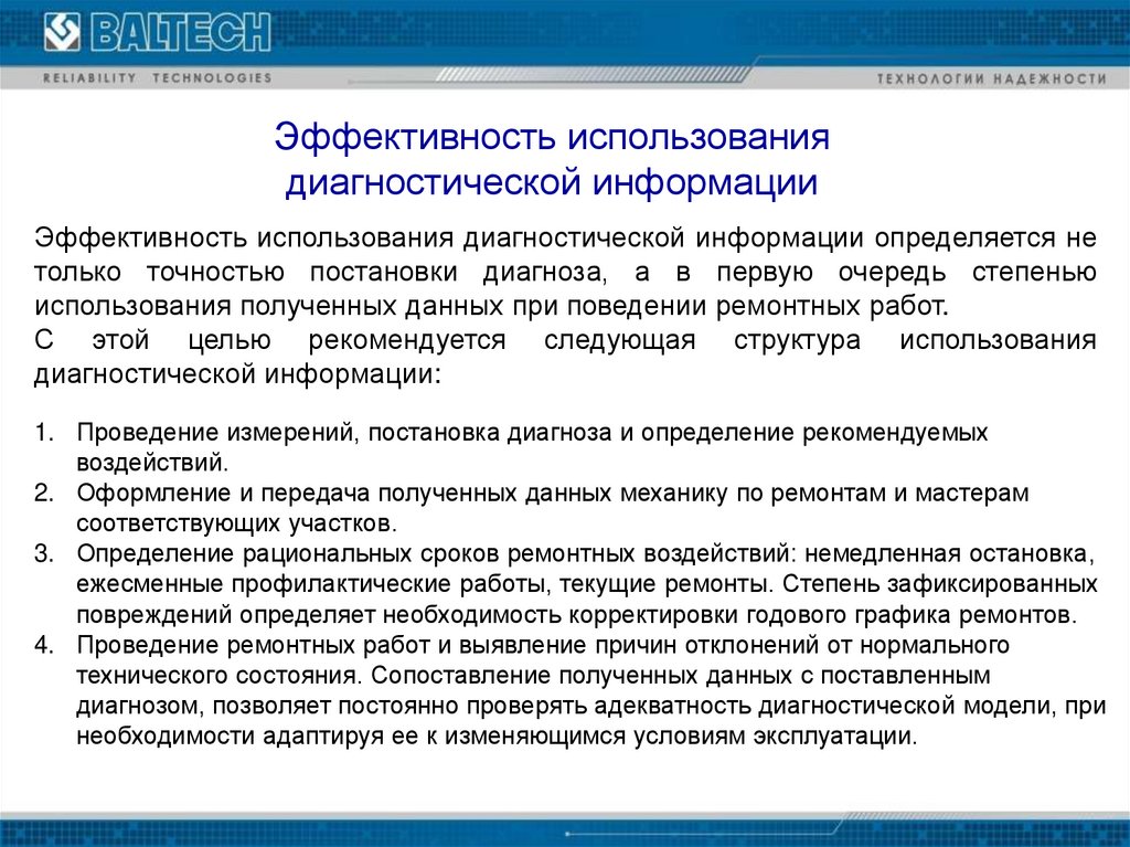 производственных цехов, для оценки эффективности работы службы диагностирования.