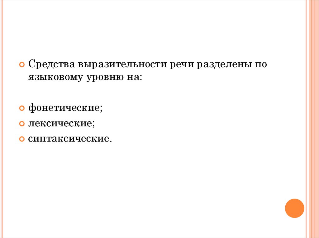 Средства выразительности речи разделены поязыковому уровню на: