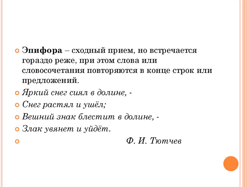 Эпифора – сходный прием, но встречаетсягораздо реже, при этом слова или