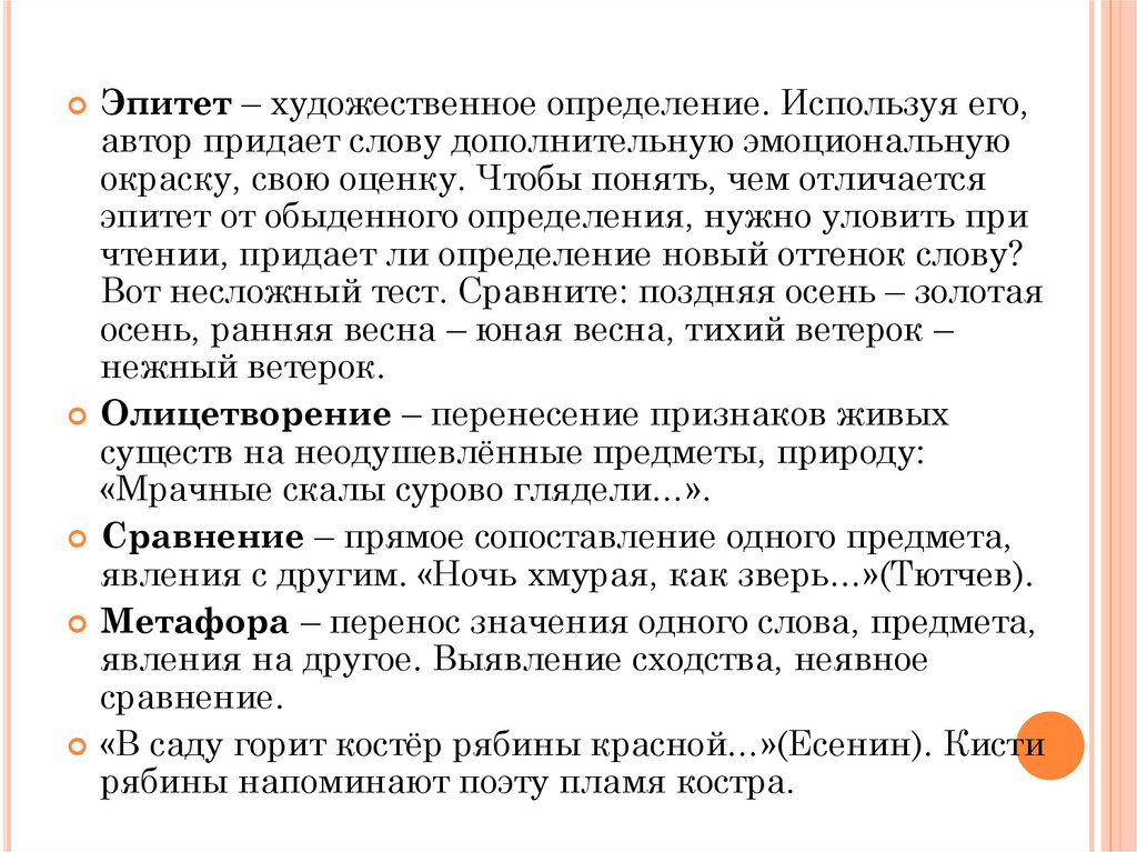 Метафора – перенос значения одного слова, предмета,