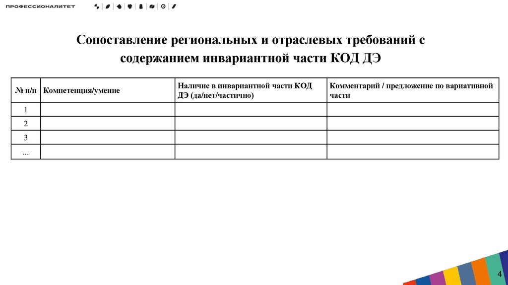 Сопоставление региональных и отраслевых требований ссодержанием инвариантной части КОД ДЭ
