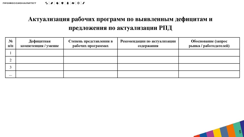 Актуализация рабочих программ по выявленным дефицитам ипредложения по актуализации РПД