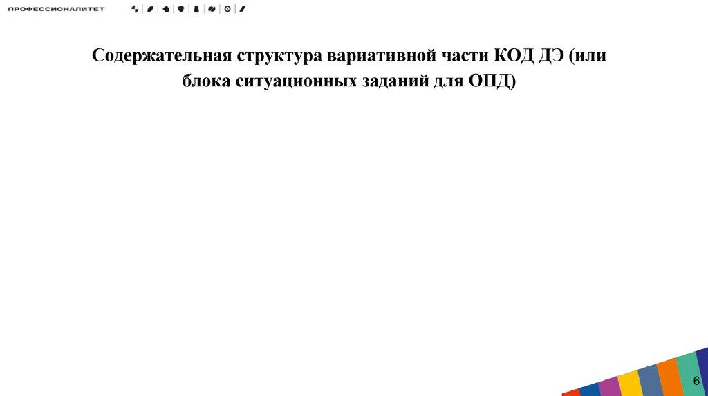 Содержательная структура вариативной части КОД ДЭ (илиблока ситуационных заданий для ОПД)