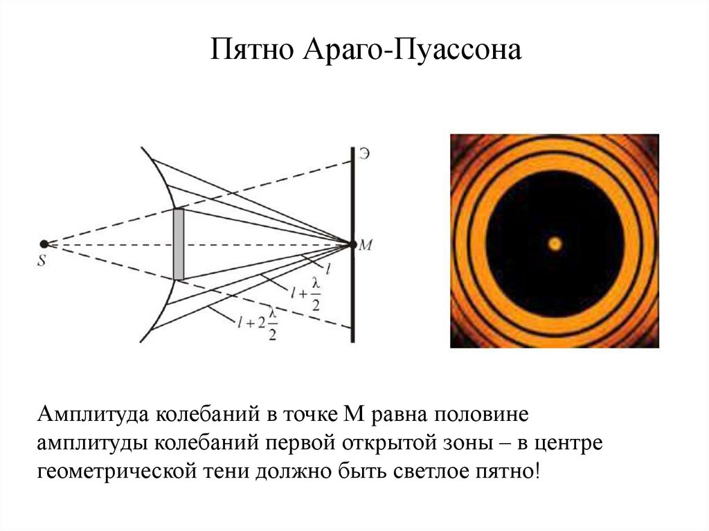 Пятно Араго-ПуассонаАмплитуда колебаний в точке М равна половине