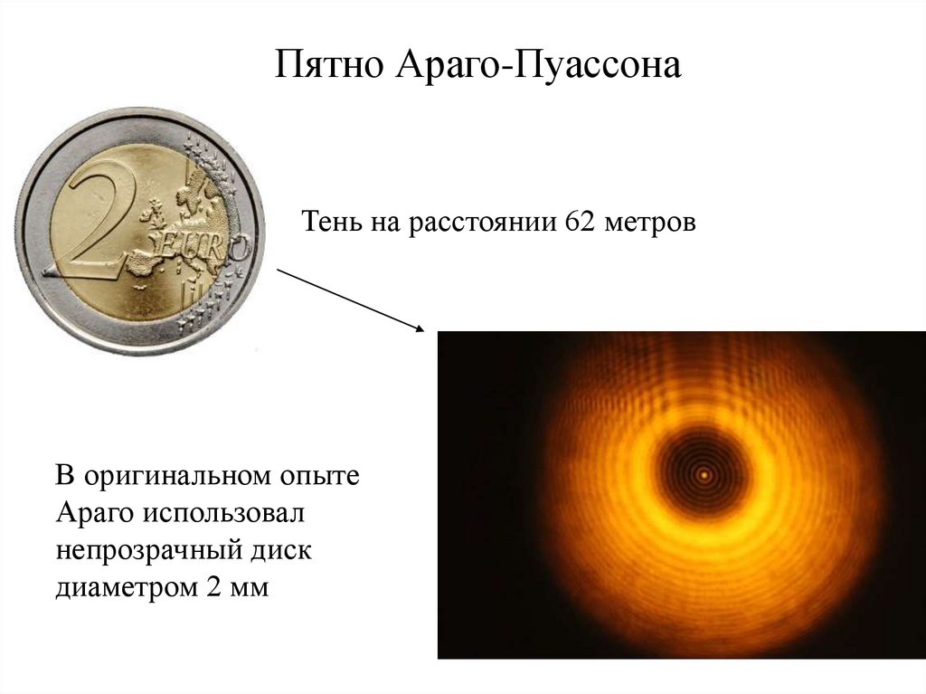 Пятно Араго-ПуассонаТень на расстоянии 62 метров