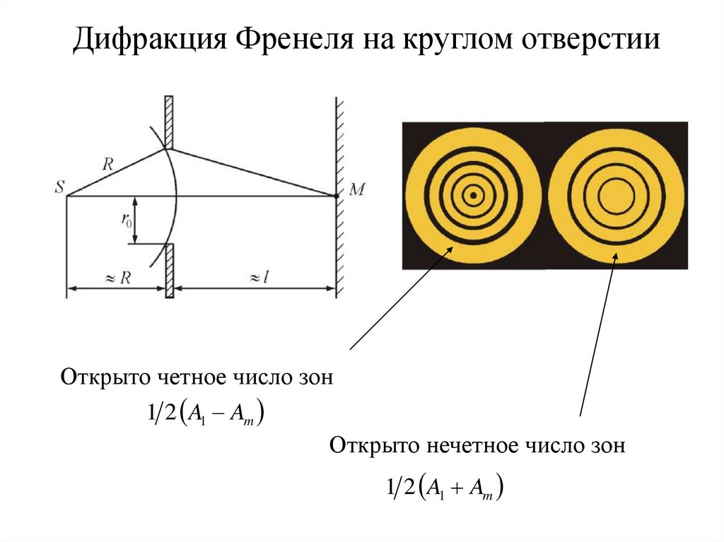 Дифракция Френеля на круглом отверстииОткрыто четное число зон
