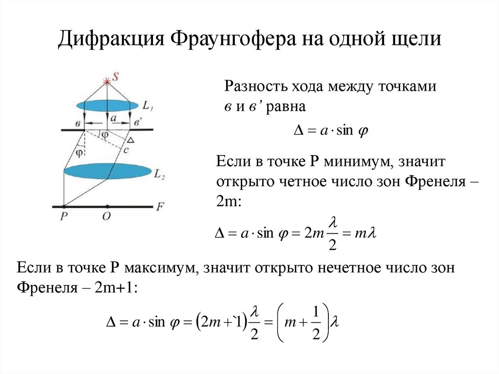 Дифракция Фраунгофера на одной щелиРазность хода между точками