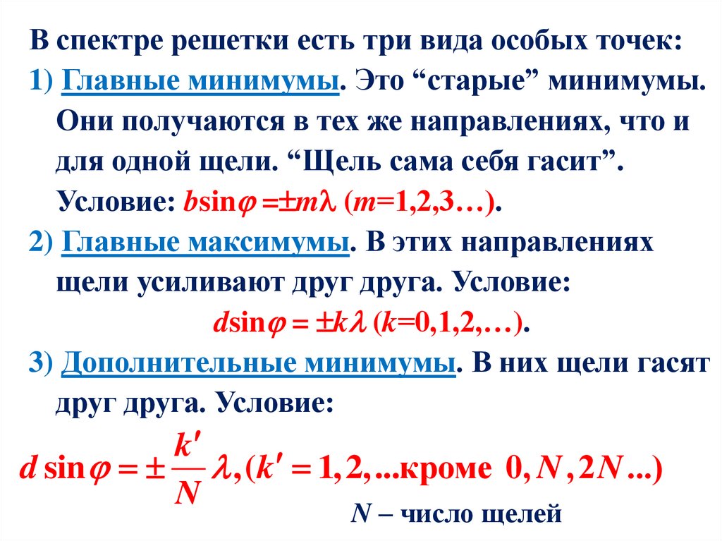 В спектре решетки есть три вида особых точек:1) Главные минимумы. Это “старые” минимумы.
