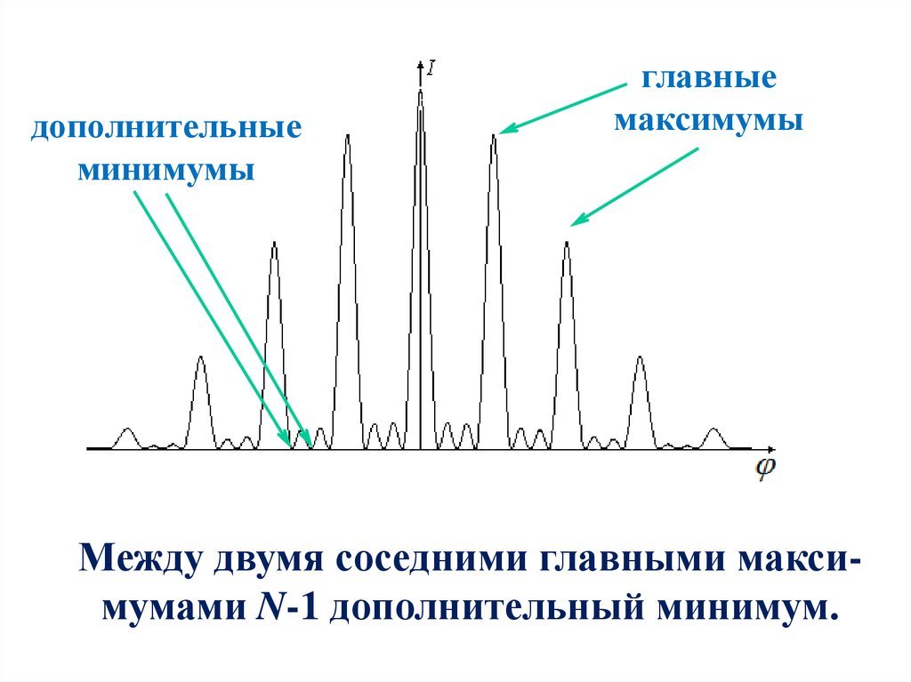 Между двумя соседними главными максимумами N-1 дополнительный минимум.