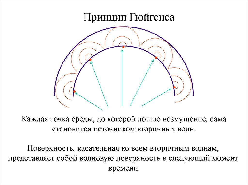 Принцип ГюйгенсаКаждая точка среды, до которой дошло возмущение, сама