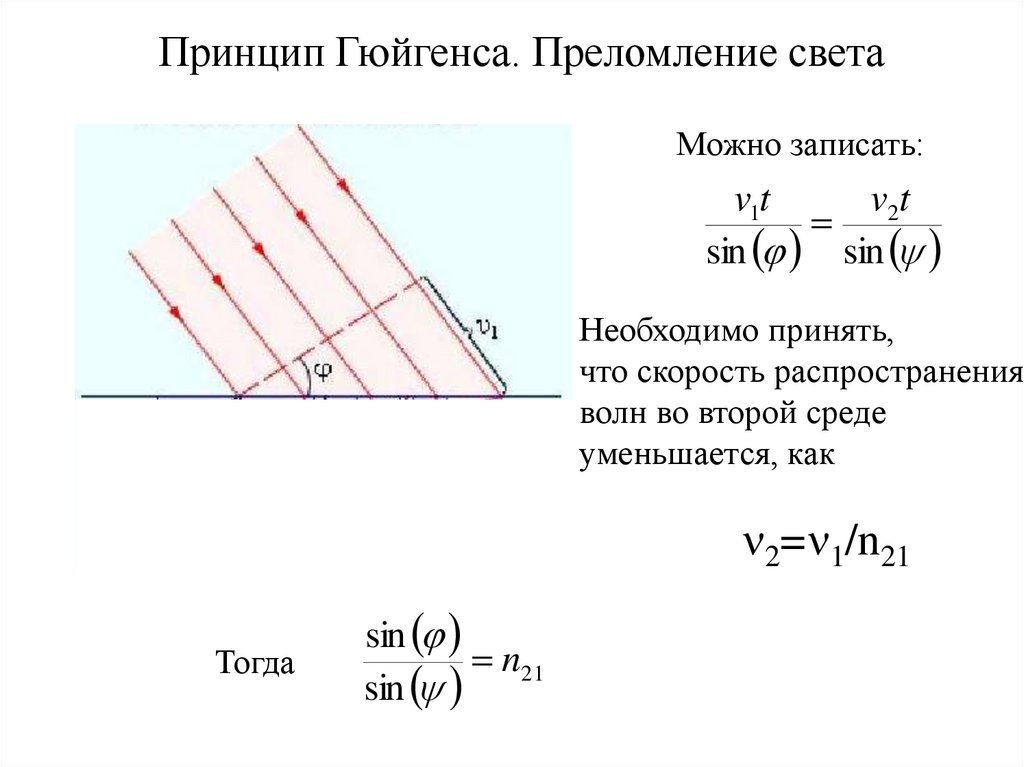 Принцип Гюйгенса. Преломление светаМожно записать: