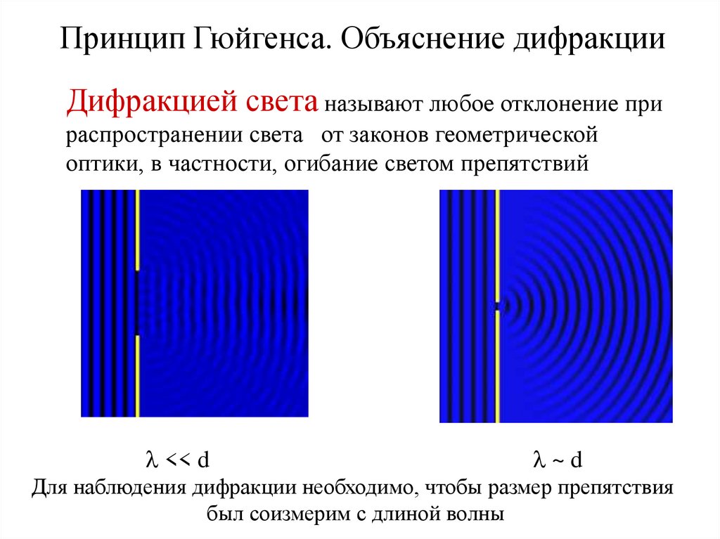 Для наблюдения дифракции необходимо, чтобы размер препятствия