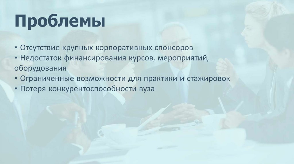 Проблемы• Отсутствие крупных корпоративных спонсоров