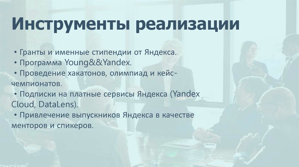 Инструменты реализации• Гранты и именные стипендии от Яндекса.