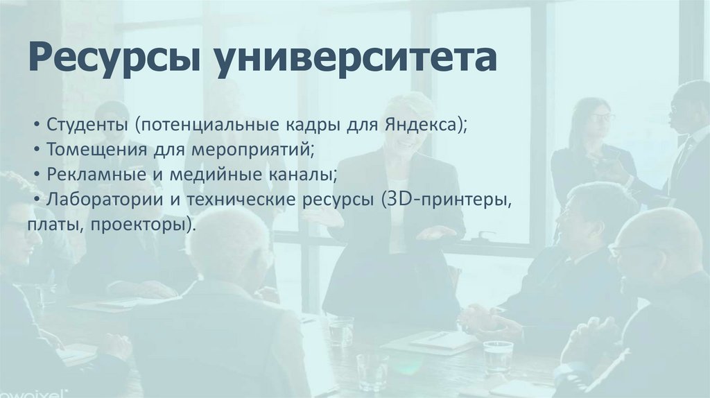 Ресурсы университета• Студенты (потенциальные кадры для Яндекса);