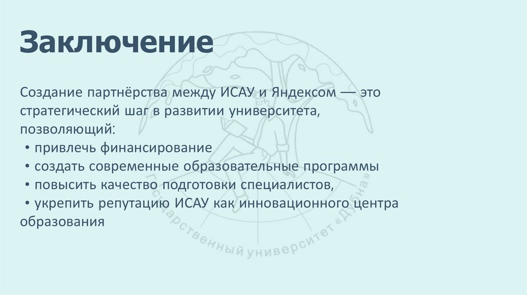 ЗаключениеСоздание партнёрства между ИСАУ и Яндексом — это