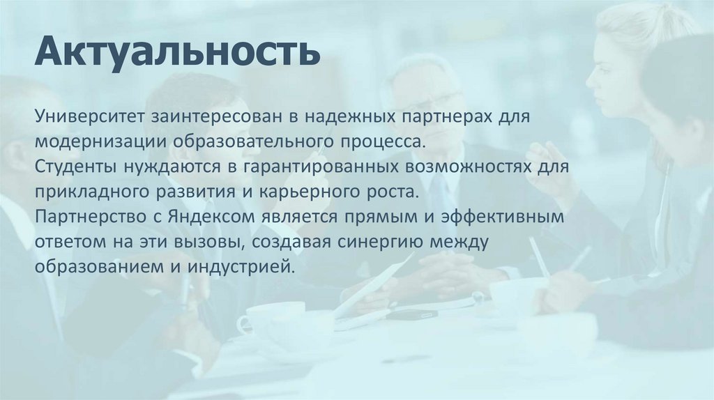 АктуальностьУниверситет заинтересован в надежных партнерах для