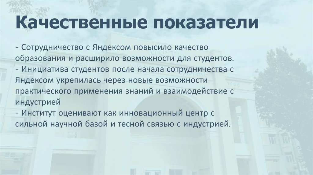 Качественные показатели- Сотрудничество с Яндексом повысило качество