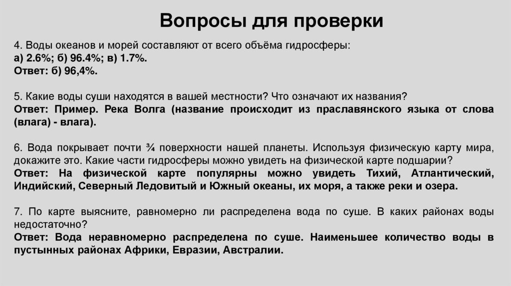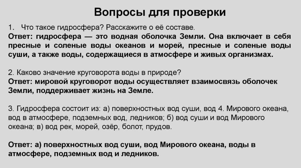 Вопросы для проверки1. Что такое гидросфера? Расскажите о её составе.