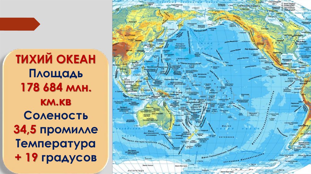 Ответ: На физической карте популярны можно увидеть Тихий, Атлантический,