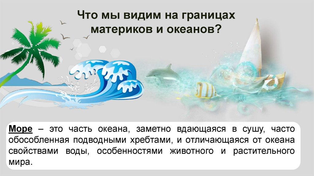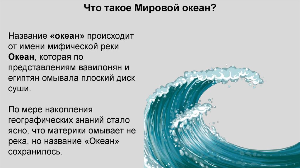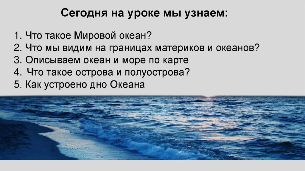 Сегодня на уроке мы узнаем:1. Что такое Мировой океан?