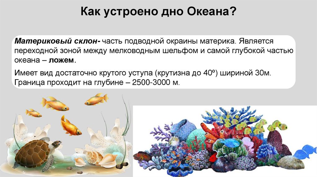 Как устроено дно Океана?Материковый склон- часть подводной окраины материка. Является