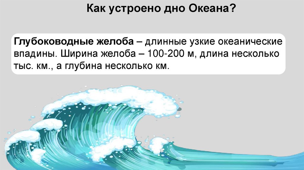 Как устроено дно Океана?Глубоководные желоба – длинные узкие океанические