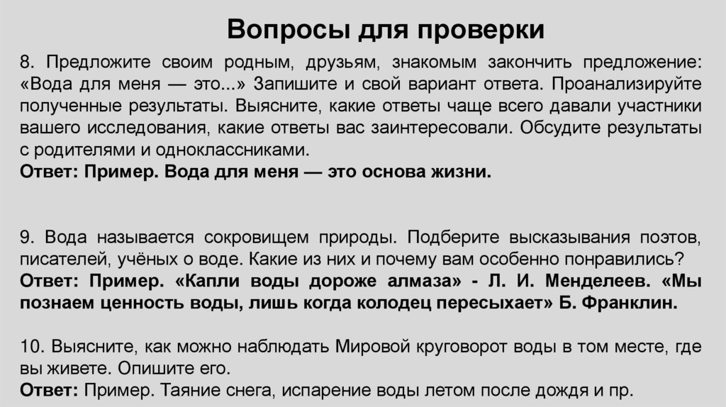 «Вода для меня — это...» Запишите и свой вариант ответа. Проанализируйте