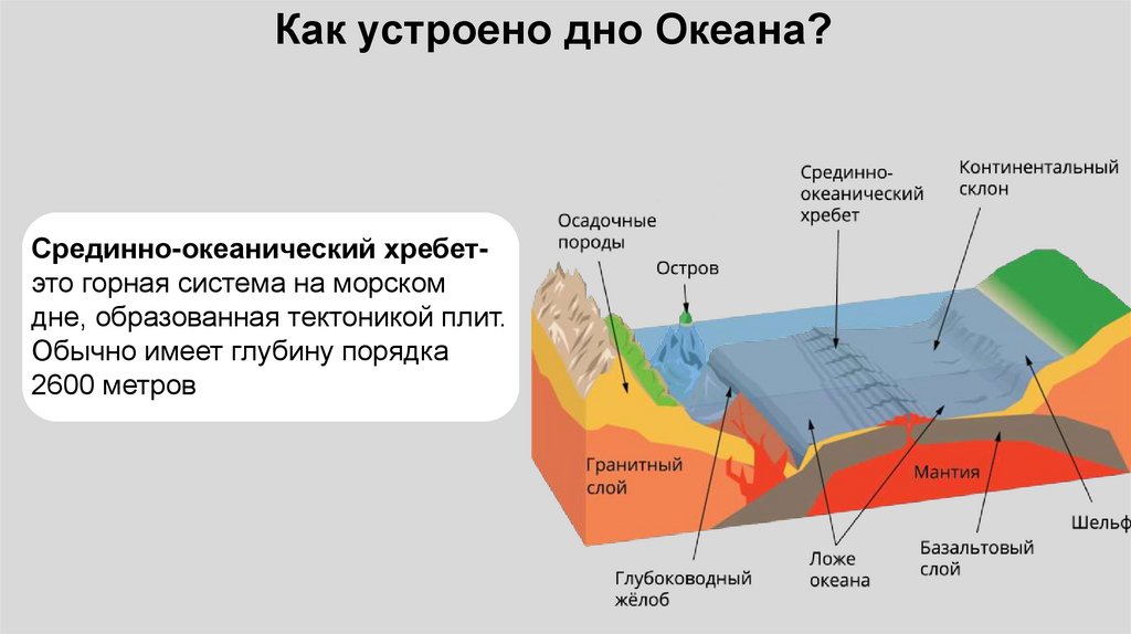 Как устроено дно Океана?Срединно-океанический хребетэто горная система на морском