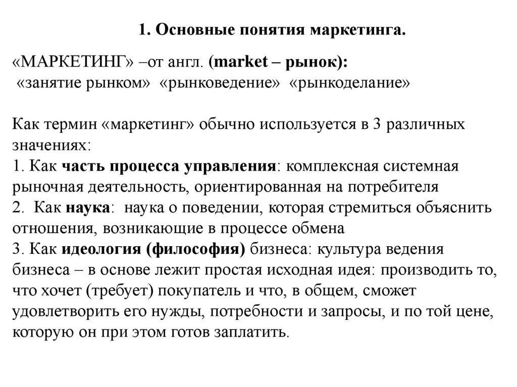 1. Основные понятия маркетинга.«МАРКЕТИНГ» –от англ. (market – рынок):