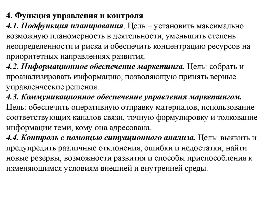 4. Функция управления и контроля4.1. Подфункция планирования. Цель – установить максимально
