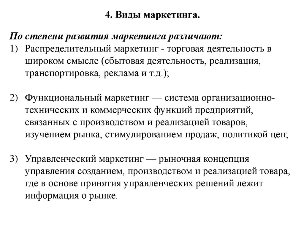 4. Виды маркетинга.По степени развития маркетинга различают: