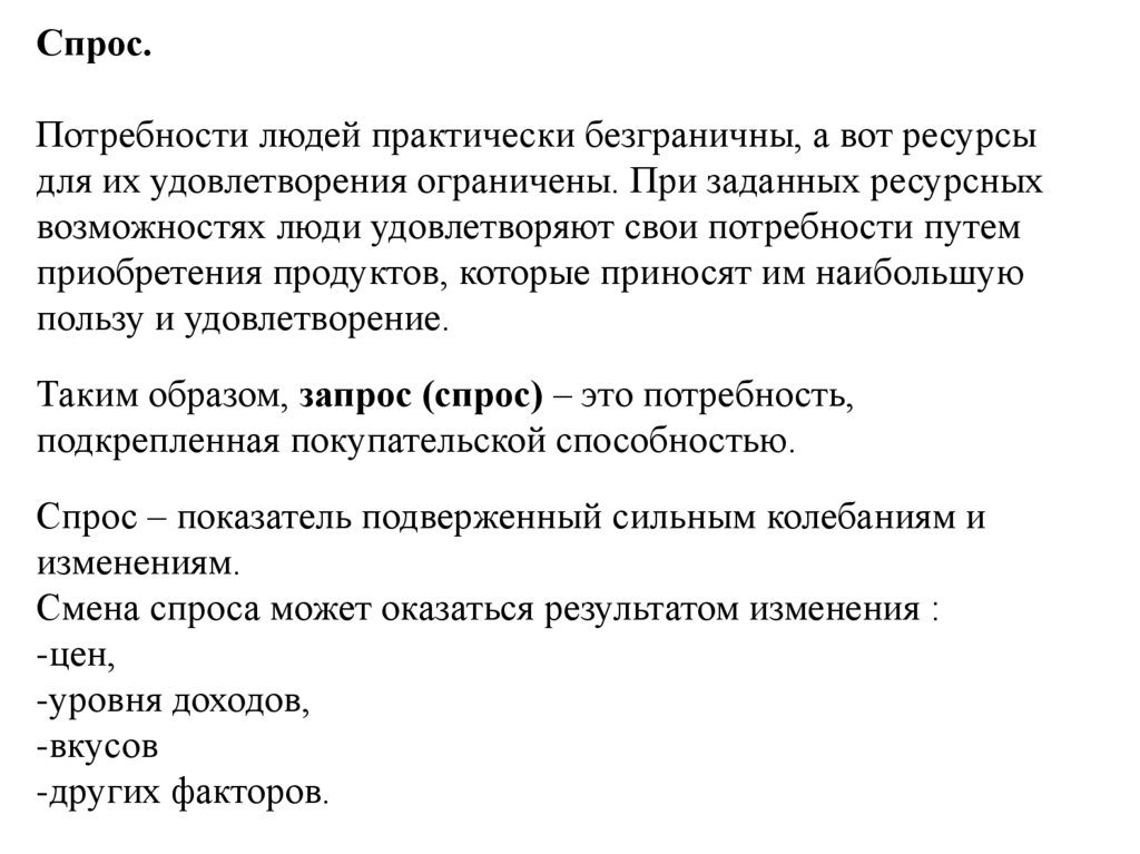 Спрос.Потребности людей практически безграничны, а вот ресурсы