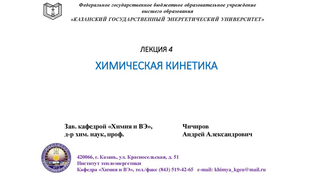 Кафедра «Химия и ВЭ», тел./факс (843) 519-42-65 e-mail: khimya_kgeu@mail.ru