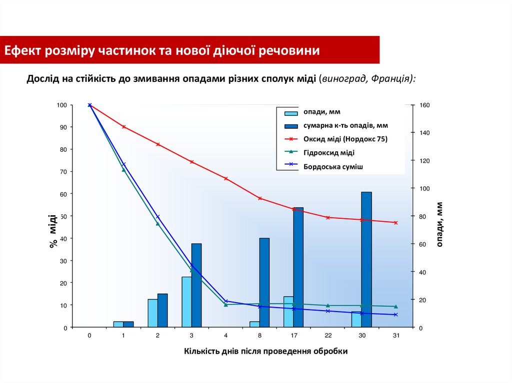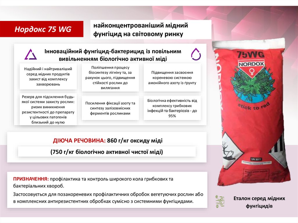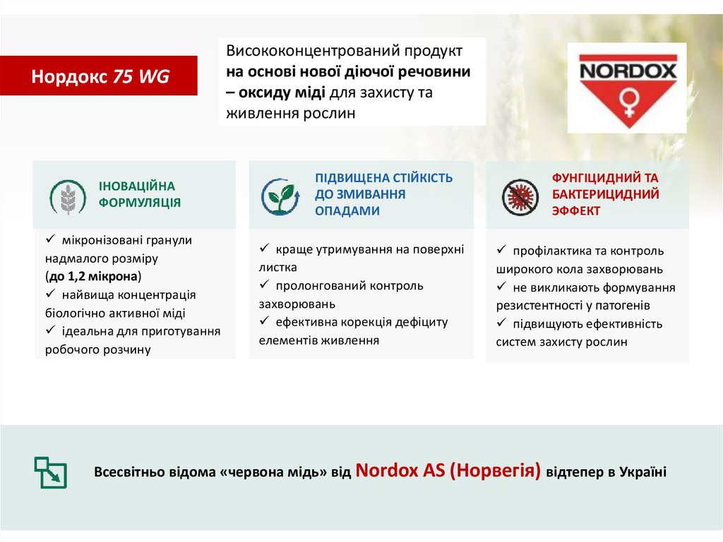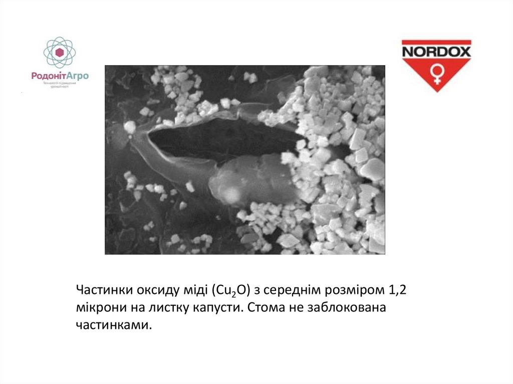 4. В основі Нордокс 75 WG – оксид міді, Cu2O з середнім розміром частинок 1,2 мікрони