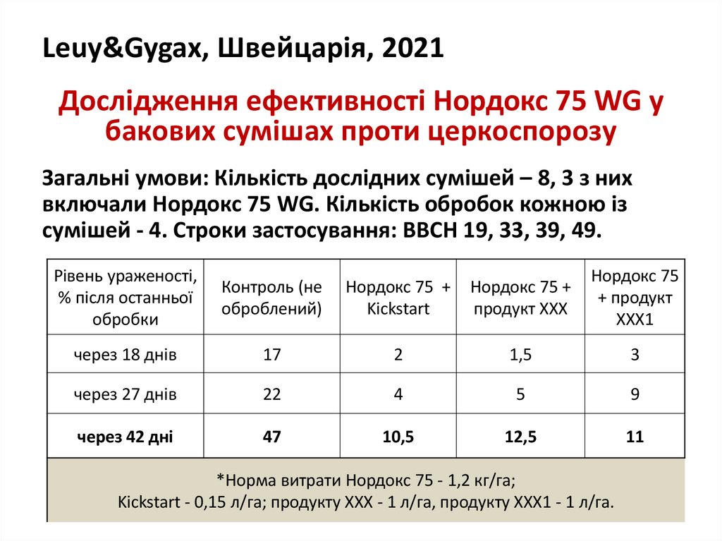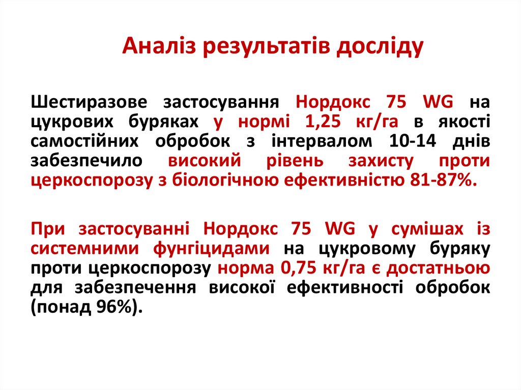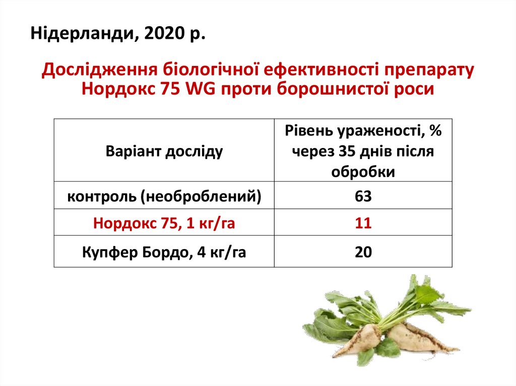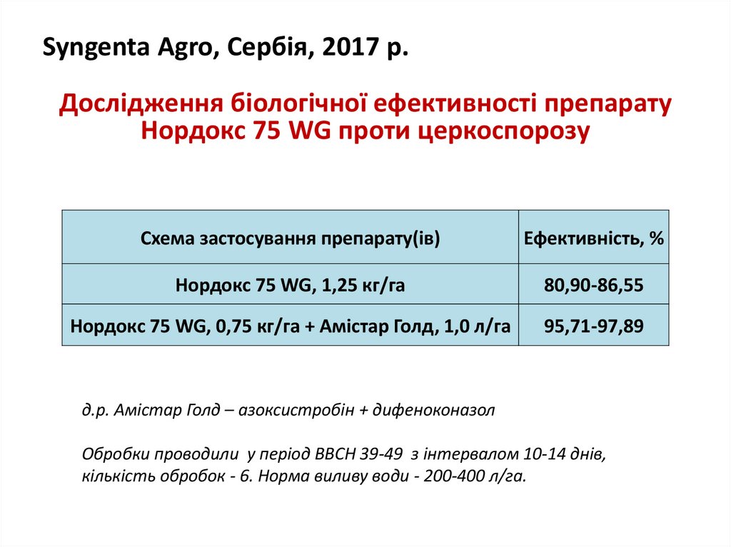 4. В основі Нордокс 75 WG – оксид міді, Cu2O з середнім розміром частинок 1,2 мікрони